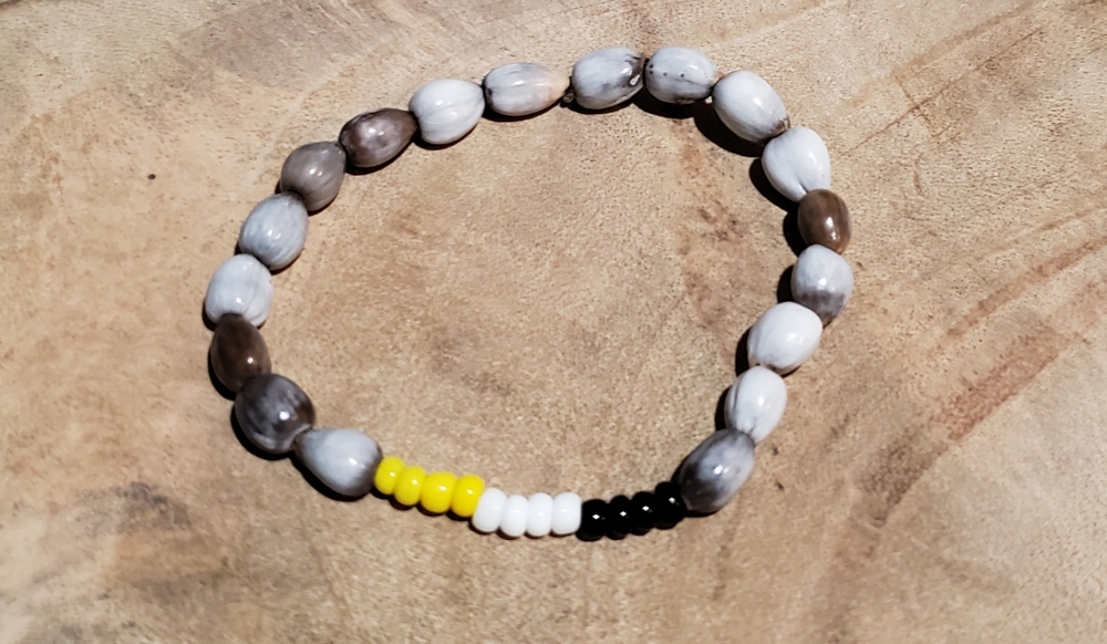 Garifuna flag Color Handmade Stretch Bracelet Made of Lagrimas de San Pedro, Yellow, white and Black Beads.
