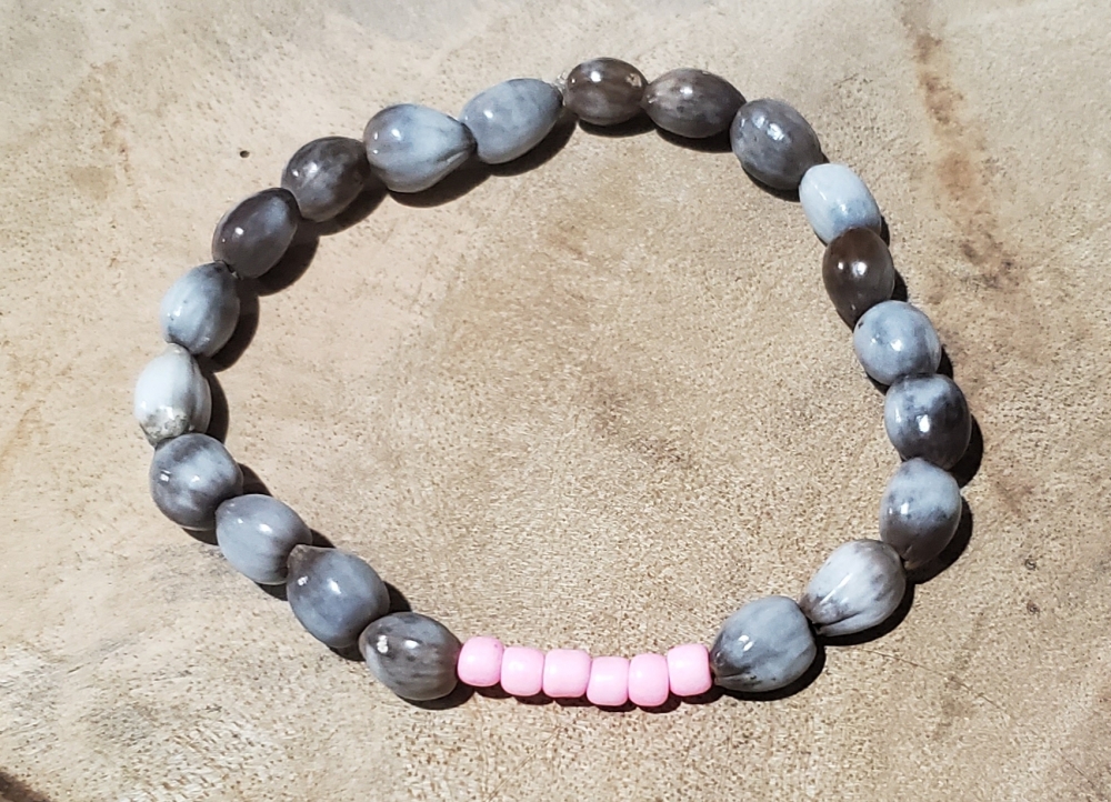Marcela Handmade Stretch Bracelet Made of Lagrimas de San Pedro and Pink Bead.