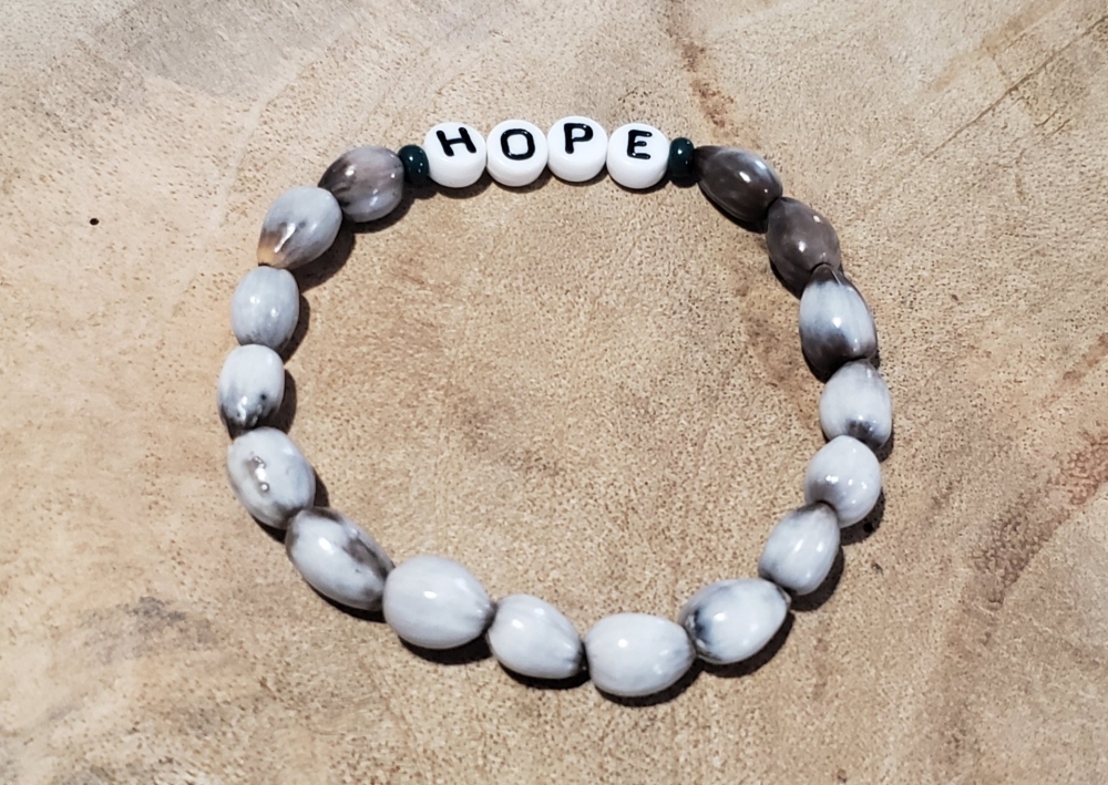 Hope Handmade Stretch Bracelet Made of Lagrimas de San Pedro, Alphabet, Black Bead.