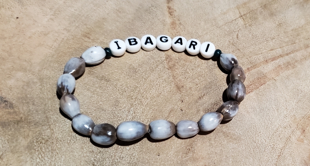 Ibagari (Life in Garifuna Language) Handmade Stretch Bracelet Made of Lagrimas de San Pedro, Alphabet and Dark Green Bead.