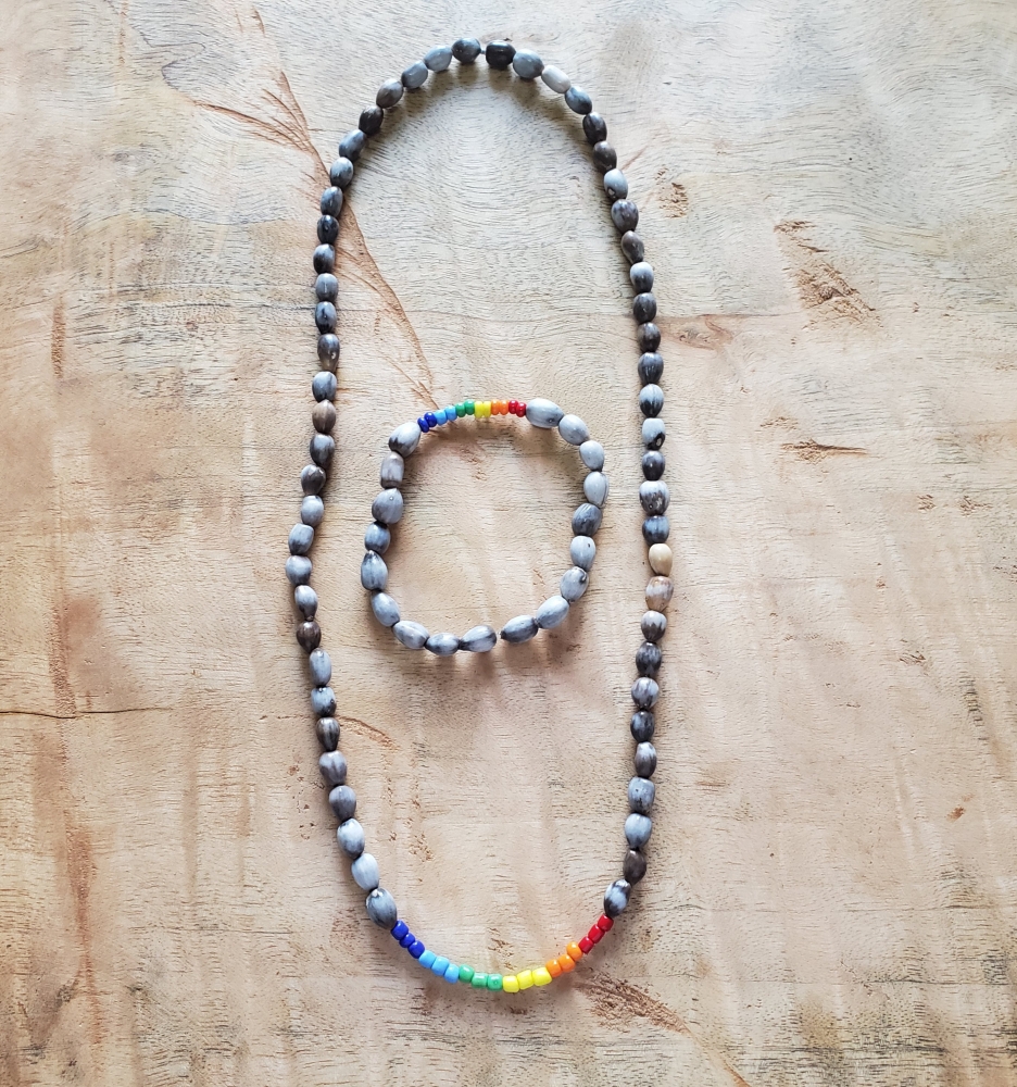 Amaya Handmade Set of Necklace and Stretch Bracelet Made of Lagrimas de San Pedro and LGBTQ Colors Bead.