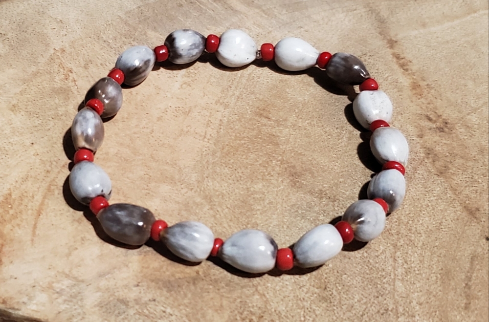 Marviño Handmade Stretch Bracelet Made of Lagrimas de San Pedro and Red Bead.
