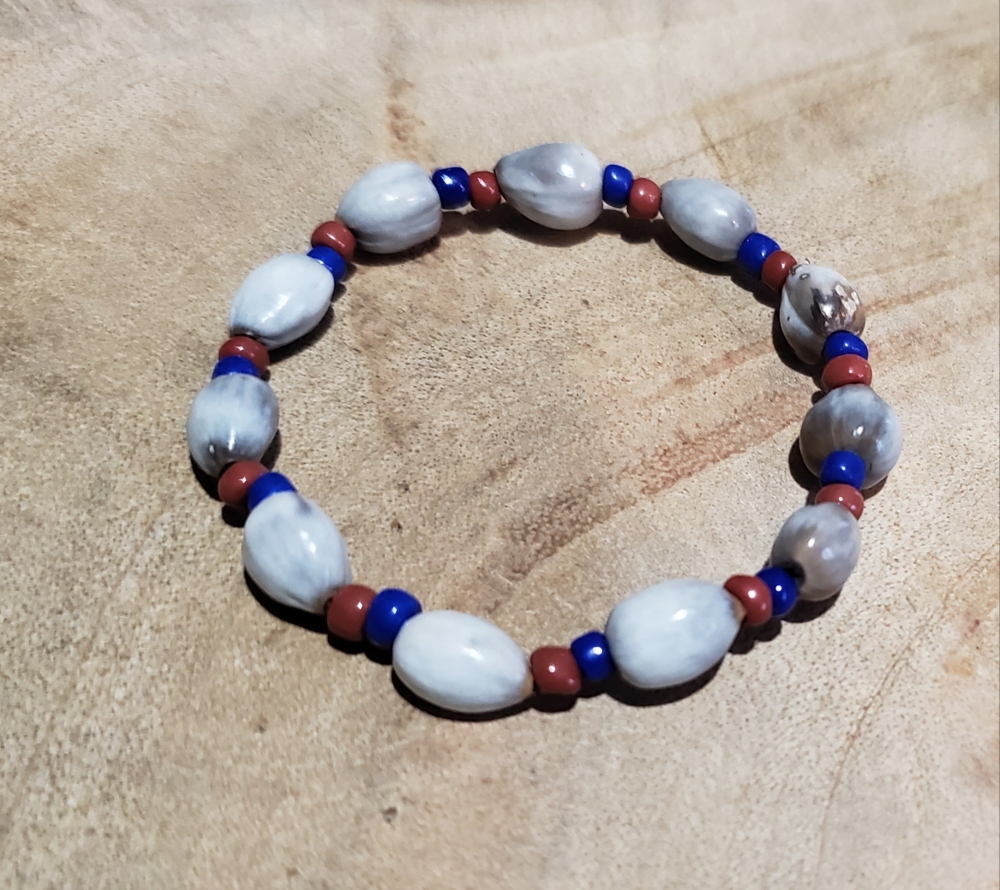 Rocco Handmade Stretch Bracelet Made of Lagrimas de San Pedro with double Royal Blue and Chocolate color Beads.