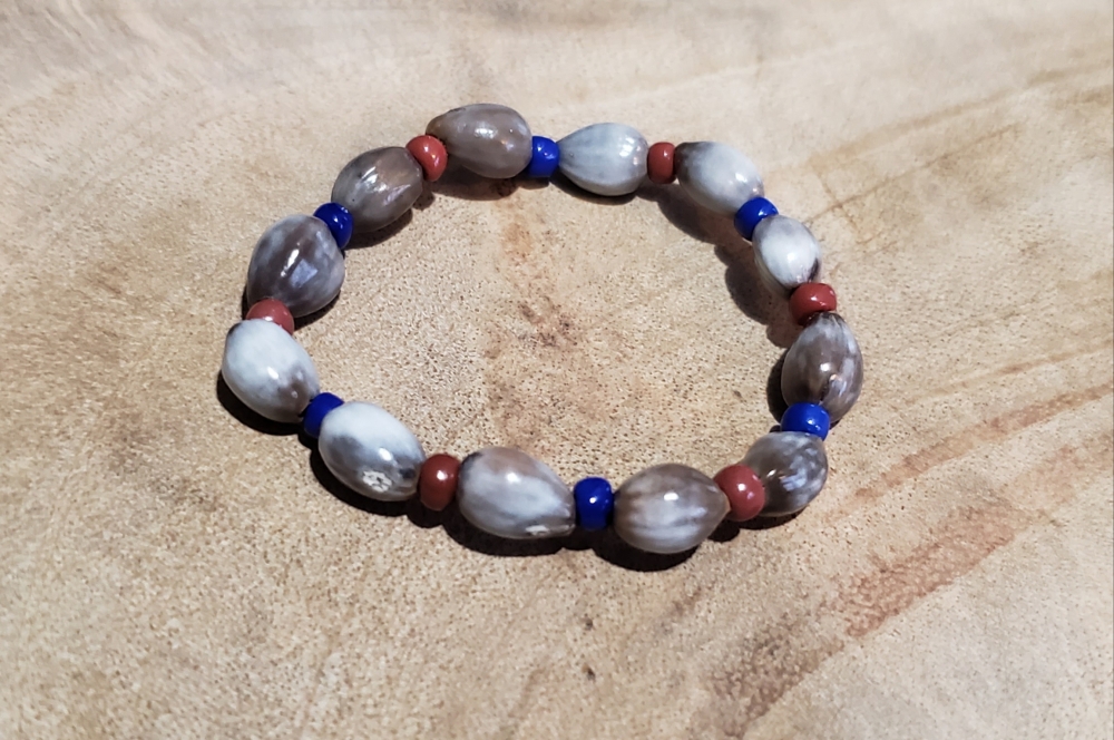 Myles Handmade Stretch Bracelet Made of Lagrimas de San Pedro with single Royal Blue and Chocolate color Beads.