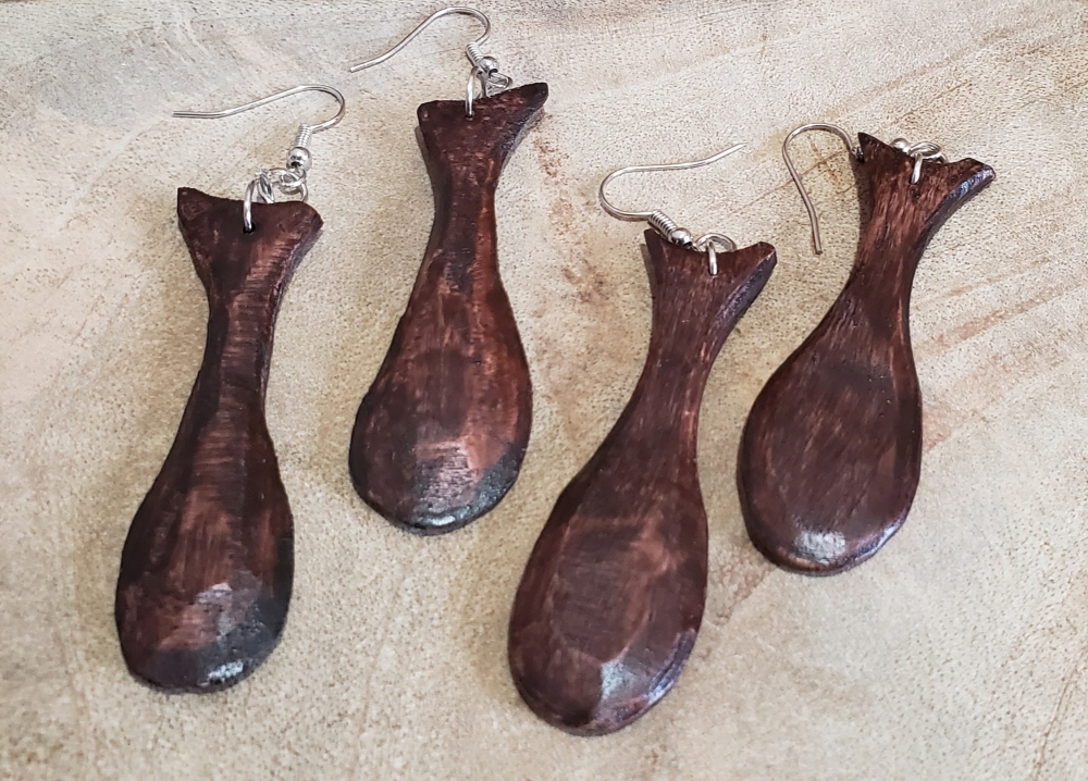 Fagayu Garifuna Legacy Fishing Tool. Handmade Small Size Drop Earrings Made of Wood Mahogany Satin.