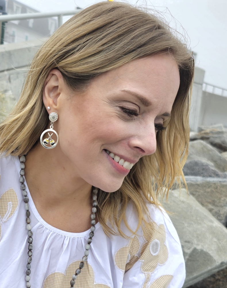 GARIFUNA LEGACY LINE Gladys A Per of Sisira Garifuna Legacy Instrument. Drop Earrings Made of Pure Silver. And Garifuna Flag Color Material. $98.00