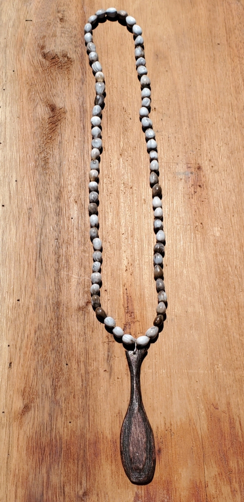 GARIFUNA LEGACY LINE Fagayu Garifuna Legacy Handmade Necklace Chain Made of Lagrimas de San Pedro Medium Size Fagayu Made of wood Mahogany Satin Drop chain. $150.00