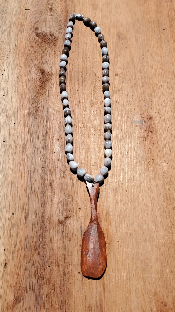Fagayu Garifuna Legacy Handmade Choker Chain Made of Lagrimas de San Pedro Medium size Fagayu Made of wood Pecan Satin Drop chain.