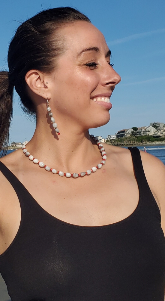 HIÑARU SERIBITU LINE Lolita Handmade Choker Made of Lagrimas de San Pedro and Red Bead. $94.00
