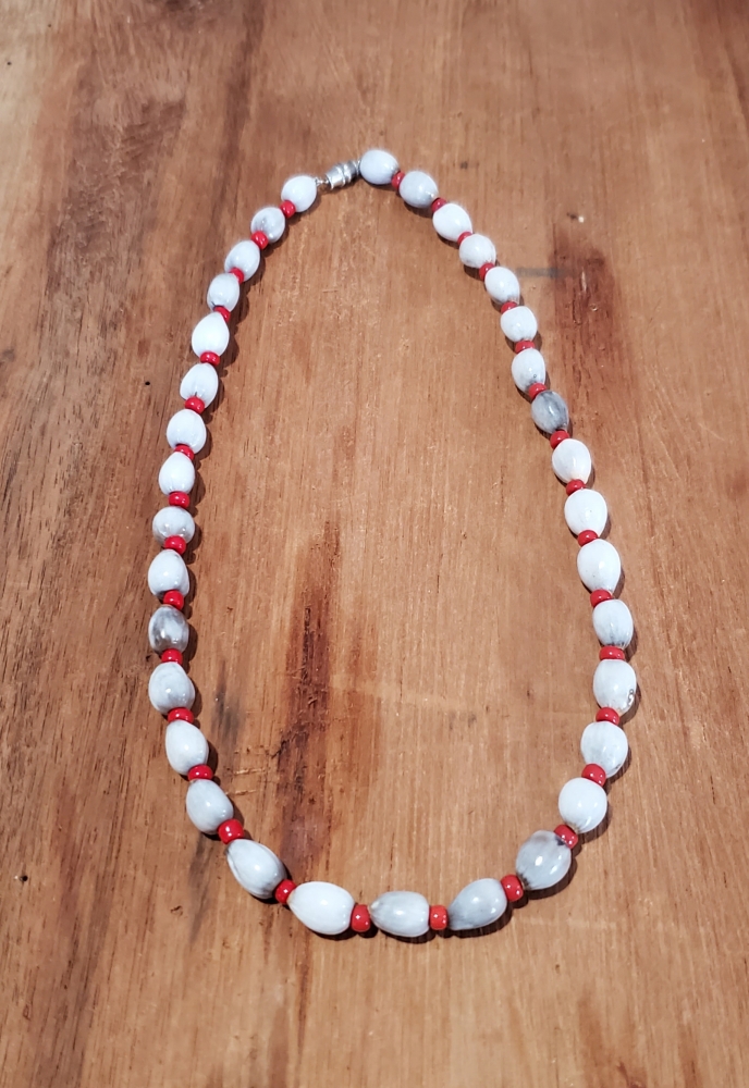 Marviño Handmade Choker Made of Lagrimas de San Pedro and Red Bead.