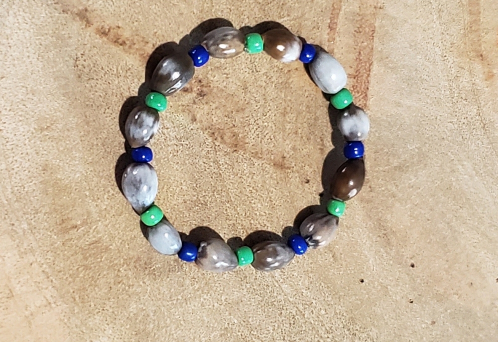 SHABELLA G- HS LINE Jaden Handmade Stretch Bracelet Made of Lagrimas de San Pedro with single Green and Royal Blue Beads. $30.00