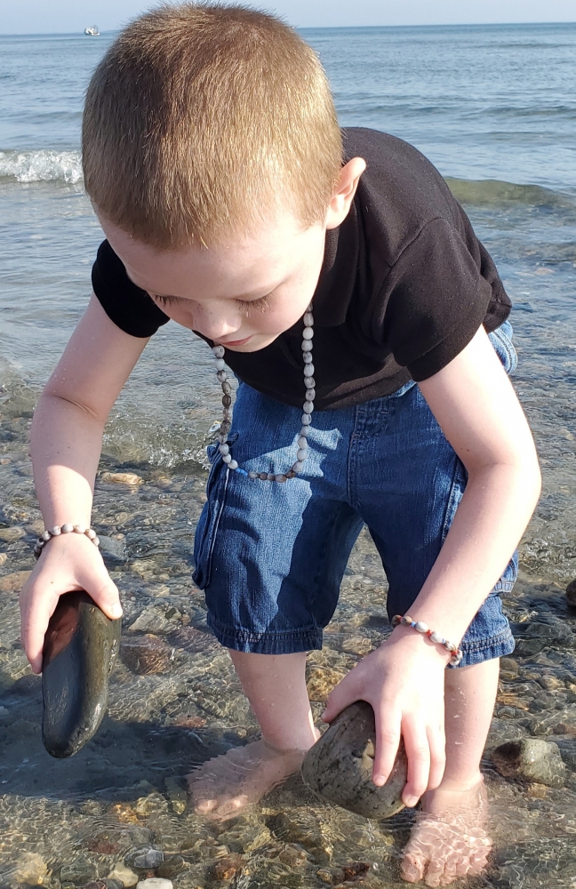 SHABELLA G- HS LINE Juan Handmade Stretch Bracelet Made of Lagrimas de San Pedro with single light Blue and Red Beads. $30.00