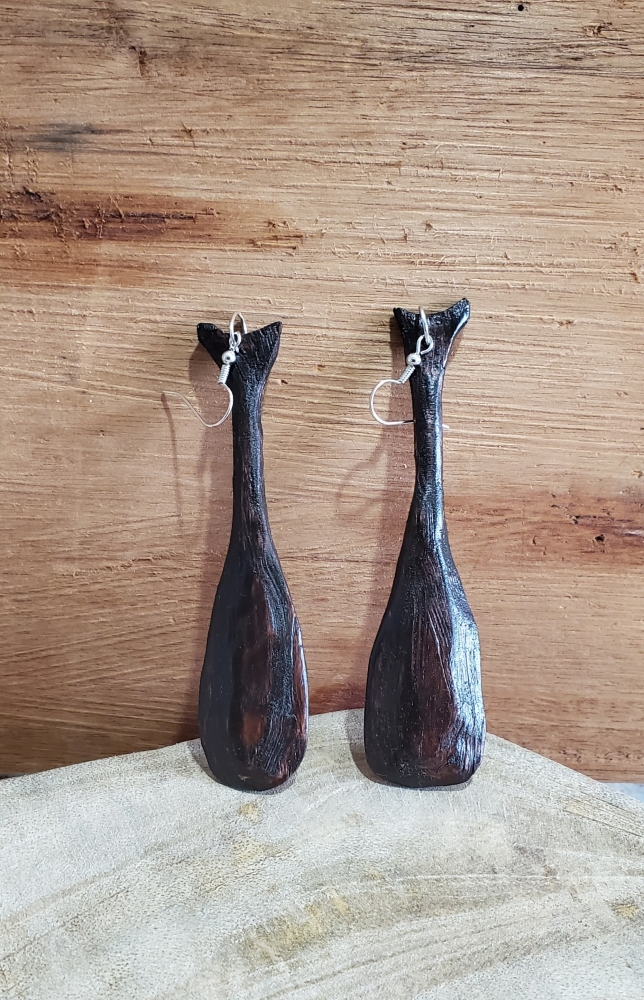 Fagayu Garifuna Legacy Handmade Medium Size Drop Earrings Made of Wood Mahogany Satin.