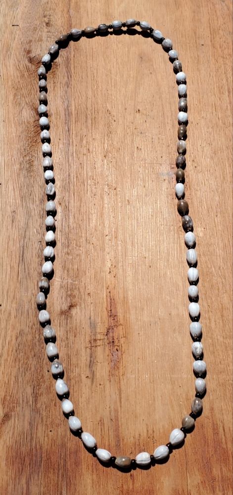 HIÑARU SERIBITU LINE Apolonia Handmade Necklace Made of Lagrimas de San Pedro and Black Bead. $130.00
