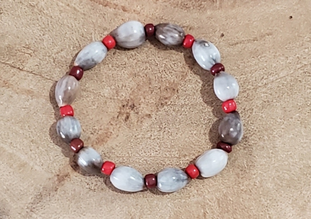Eduardo Handmade Stretch Bracelet Made of Lagrimas de San Pedro with single Red and Chocolate color Beads.