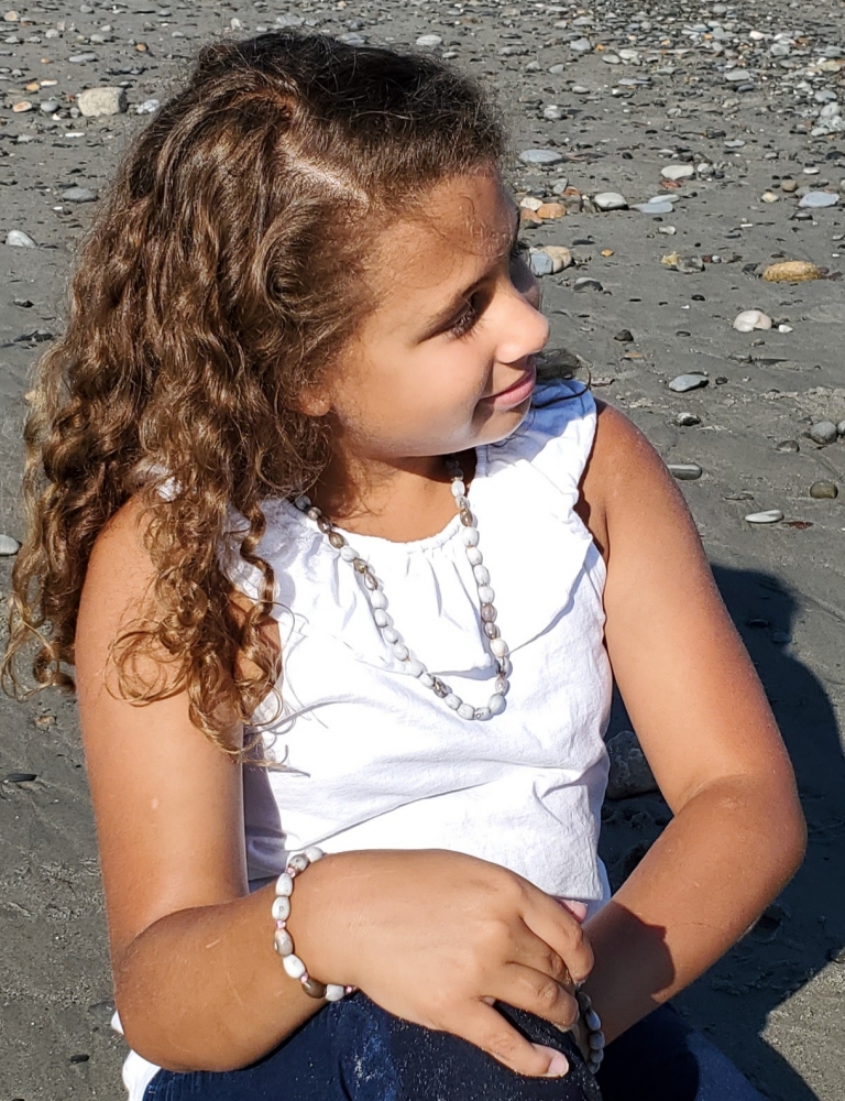 Iris Handmade Stretch Bracelet Made of double Lagrimas de San Pedro and transparent pink Bead.