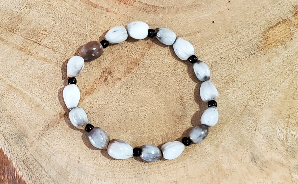 Lucas Handmade Stretch Bracelet Made of double Lagrimas de San Pedro and Black Bead.