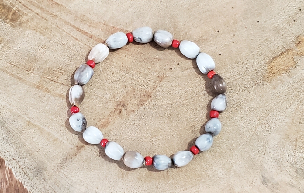 Faustino Handmade Stretch Bracelet Made of double Lagrimas de San Pedro and Red Bead.