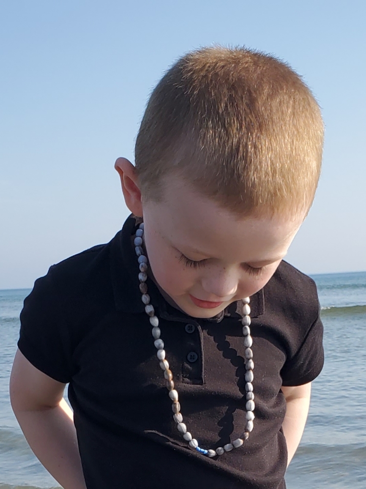 Finley Handmade Necklace Made of Lagrimas de San Pedro and Three Light Blue Beads.
