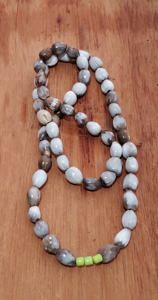 Camila Handmade Necklace Made of Lagrimas de San Pedro and Three Baby Green color Beads.