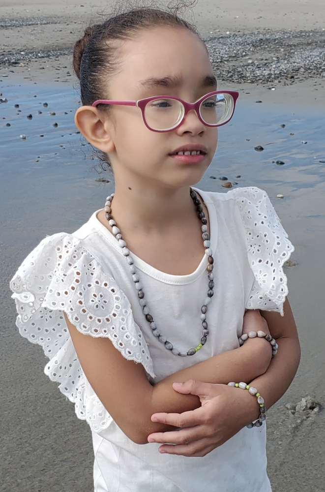 HIÑARU SERIBITU LINE Camila Handmade Necklace Made of Lagrimas de San Pedro and Three Baby Green color Beads. $80.00
