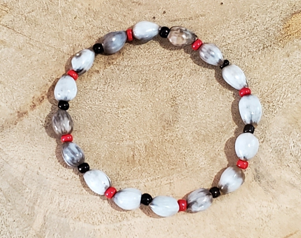 Emigdio Handmade Stretch Bracelet Made of Lagrimas de San Pedro with single Black and Red Beads.
