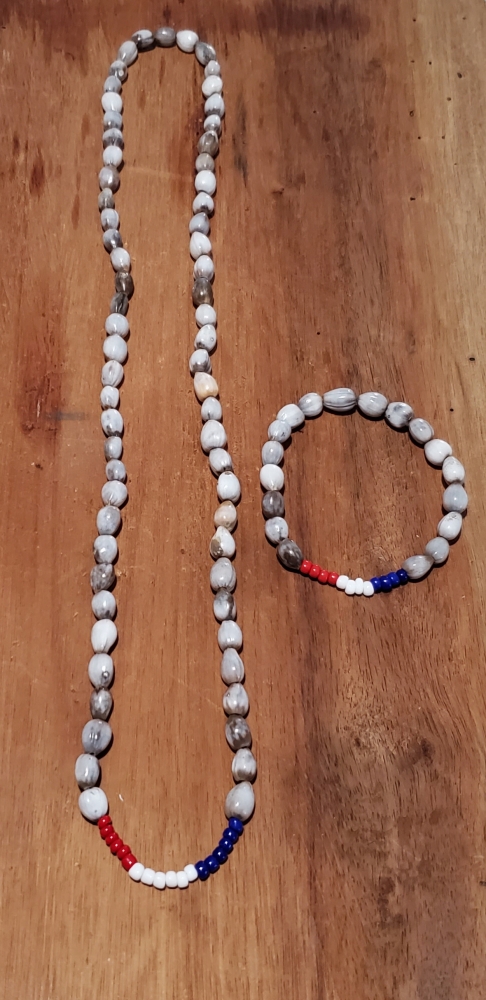 HIÑARU SERIBITU LINE United States of America flag Color Set Handmade Necklace, Stretch Bracelet Made of Lagrimas de San Pedro, Red, White and Blue Beads. $170.00