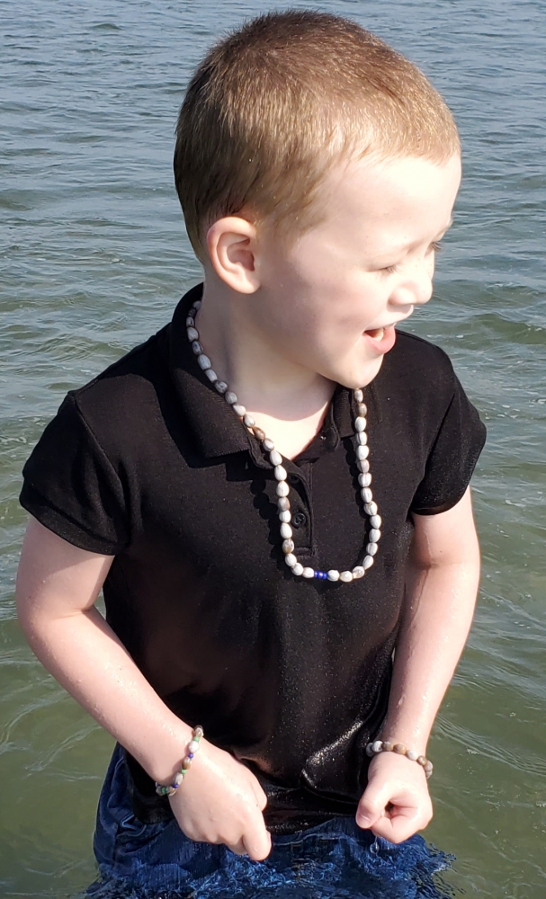 Emil Nguema Set Handmade Necklace Two Stretch Bracelets, One Emil Nguema Necklace, Made of Lagrimas de San Pedro and Three Royal blue Beads, One Jaden Stretch Bracelet Made of Lagrimas de San Pedro with single Green and Royal Blue Beads, One Garifuna Legacy Stretch Bracelet Made of Lagrimas de San Pedro.