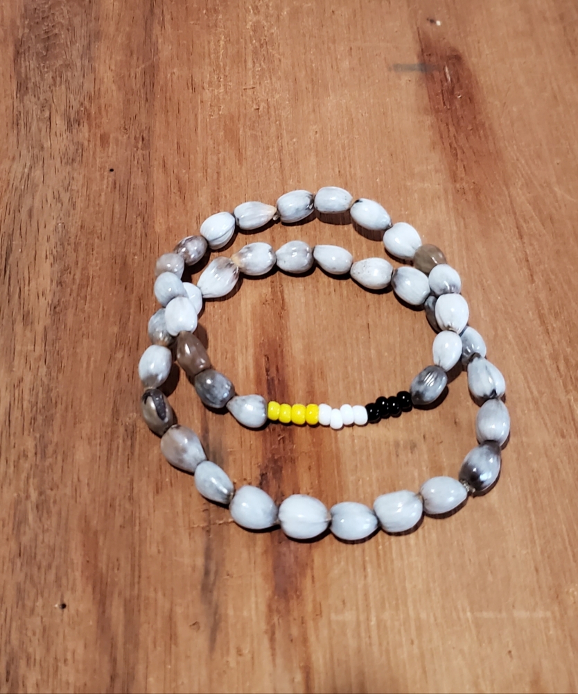 Garifuna flag Set Handmade Stretch Bracelets One Made of Lagrimas de San Pedro and Yellow, white and Black Beads, One Made of Lagrimas de San Pedro.