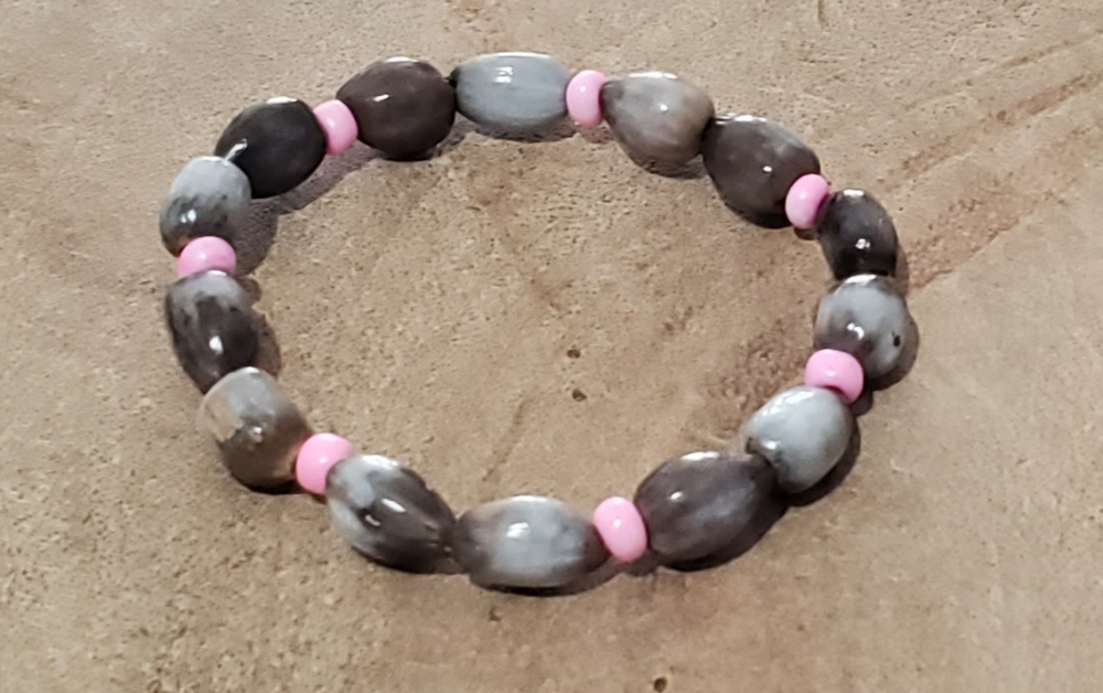 HIÑARU SERIBITU LINE Isla Handmade Stretch Bracelet Made of double Lagrimas de San Pedro and Pink Bead. $30.00