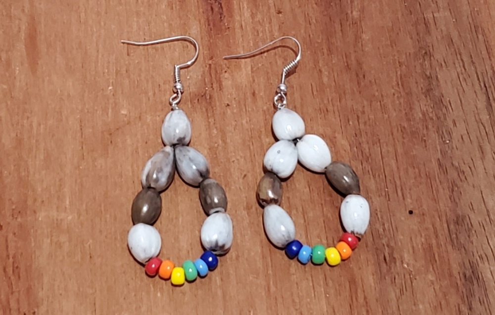 Amaya Handmade Medium Size Drop Earrings Made of Lagrimas de San Pedro and LGBTQ Colors Bead.