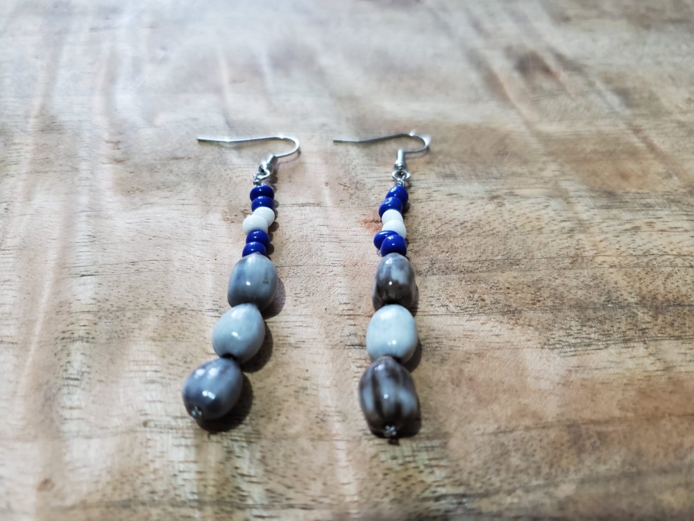 Honduras Flag Handmade Medium Size Drop Earrings Made of Lagrimas de San Pedro Blue and White Bead.