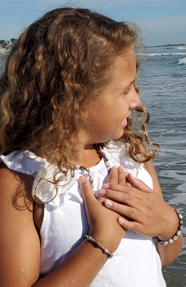 Samya Handmade Stretch Bracelet Made of Lagrimas de San Pedro with single Green and Fuchsia color Beads.