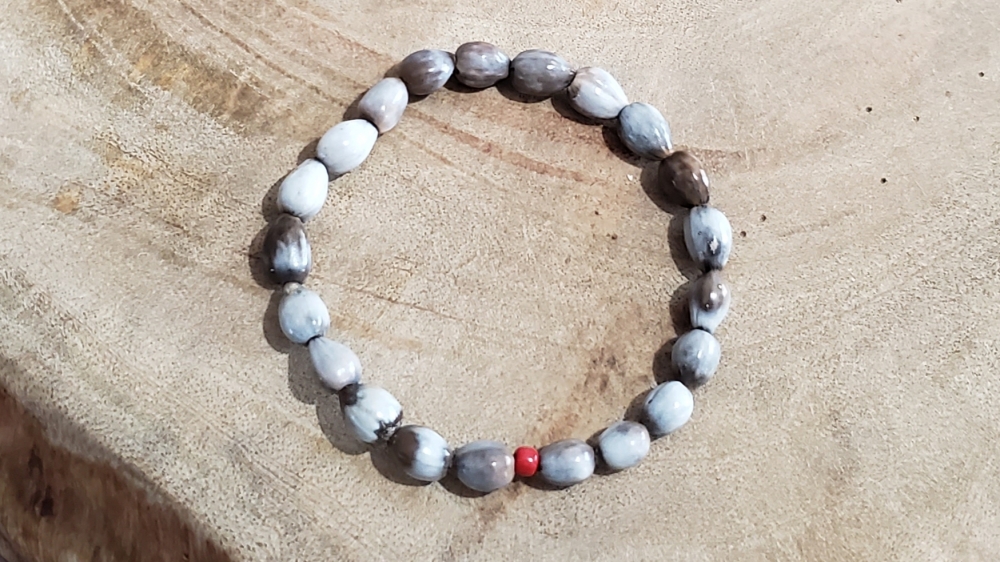 Niguirama Handmade Stretch Bracelet Made of Lagrimas de San Pedro and one Red Bead.