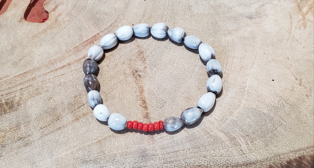 Dario Handmade Stretch Bracelet Made of Lagrimas de San Pedro and Seven Red Bead.