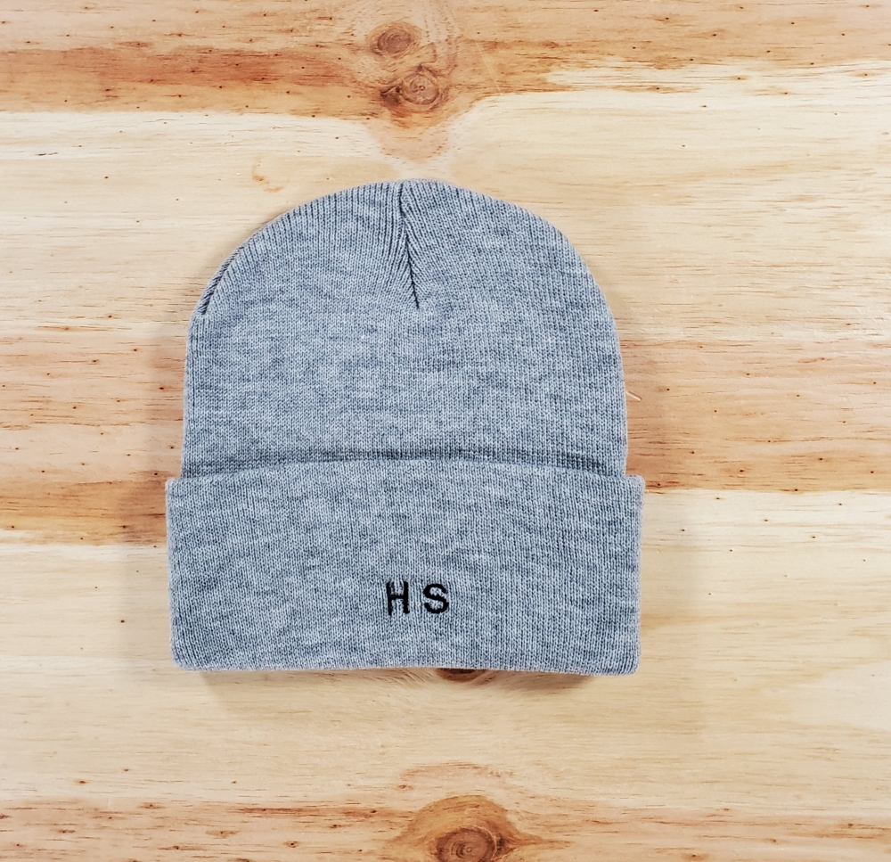 Heather Gray Hiñaru Seribitu Initial H S Beanie. 100 % Acrylic Knit, Height 9.84 in Weight 2.3 Oz, Hand Wash Cold or Dry Clean.