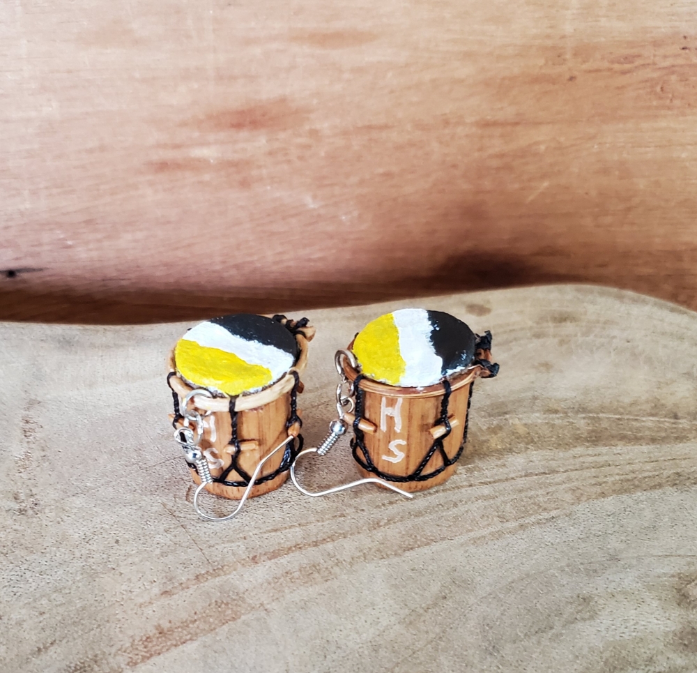 Garawoun Garifuna Legacy Instrument. Handmade Drop Earrings Made of Wood Pecan Satin. Hand Paint Garifuna Flag Color. .