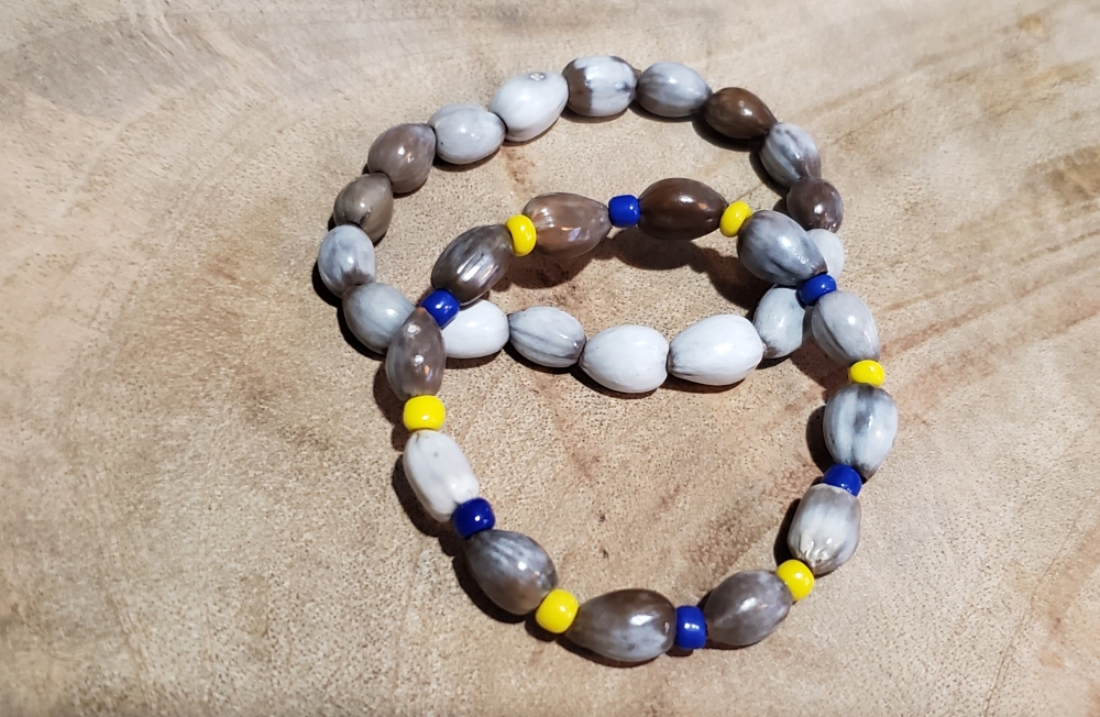 GARIFUNA- SHABELLA G- HS LINEGarifuna Legacy Jean Marcos Set Handmade Bracelets, One Garifuna Legacy Stretch Bracelet Made of Lagrimas de San Pedro. One Jean Marcos Stretch Bracelet Made of Lagrimas de San Pedro with single Yellow and Royal Blue Beads. $56.00