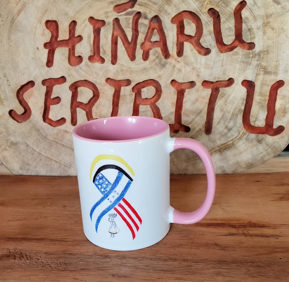 Hiñaru Seribitu Fighting Cancer Logo 11 Oz Pink and White Mug. Microwave and Dishwasher- Safe.