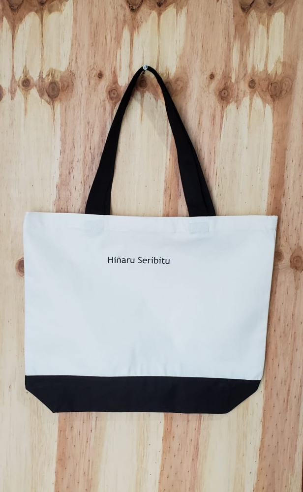 Hana Image Two - Tone Deluxe 19"×15"×6 White/ Black Tote Bag. Machine Wash Gentle Cold, Non Chlorine Bleach, Tumble Dry Low, Cool Iron, Do Not Iron Decoration Area.