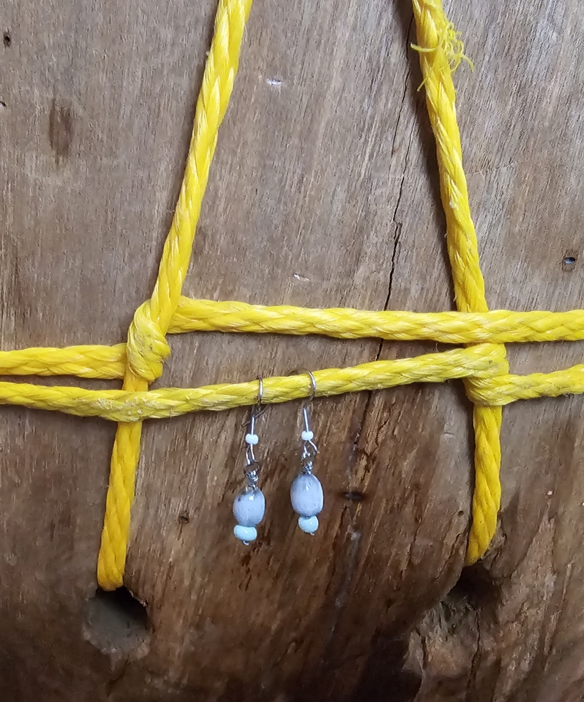 Handmade Small Size Drop Earrings Made of Lagrimas de San Pedro, White and Blue sky color Bead.