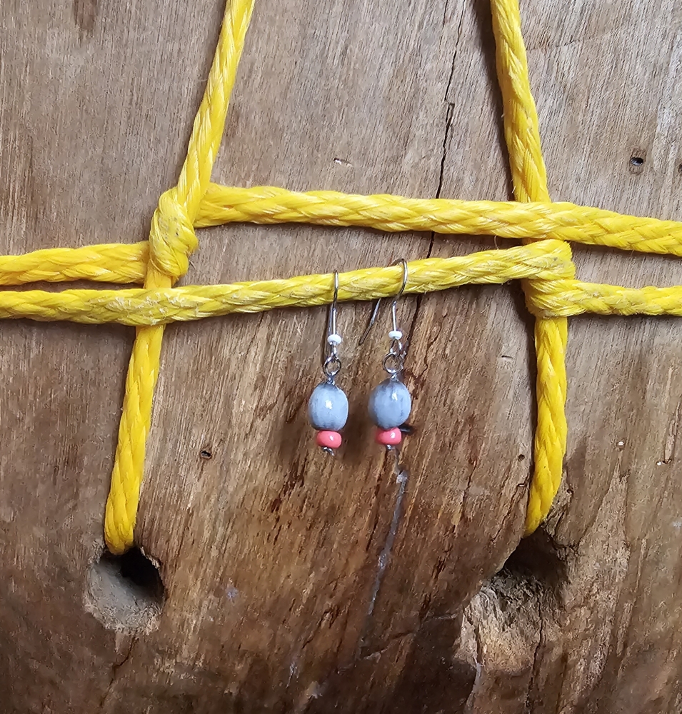 Handmade Small Size Drop Earrings Made of Lagrimas de San Pedro with, White, Peach color Bead.