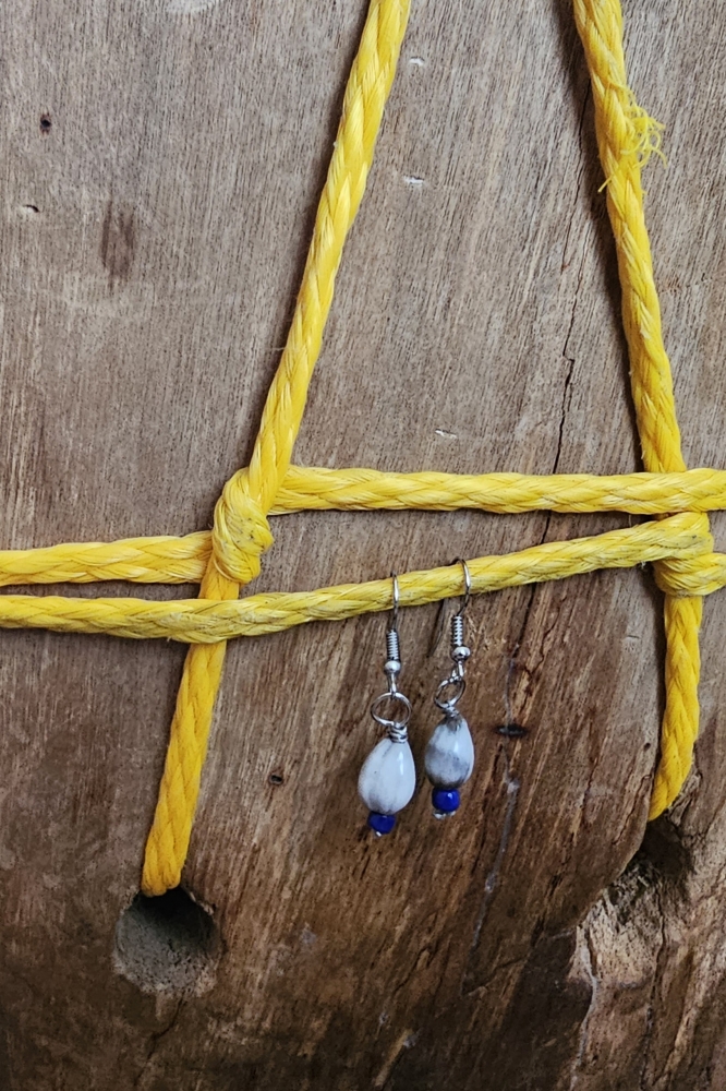 Handmade Small Size Drop Earrings Made of Lagrimas de San Pedro with Royal Blue color Bead.